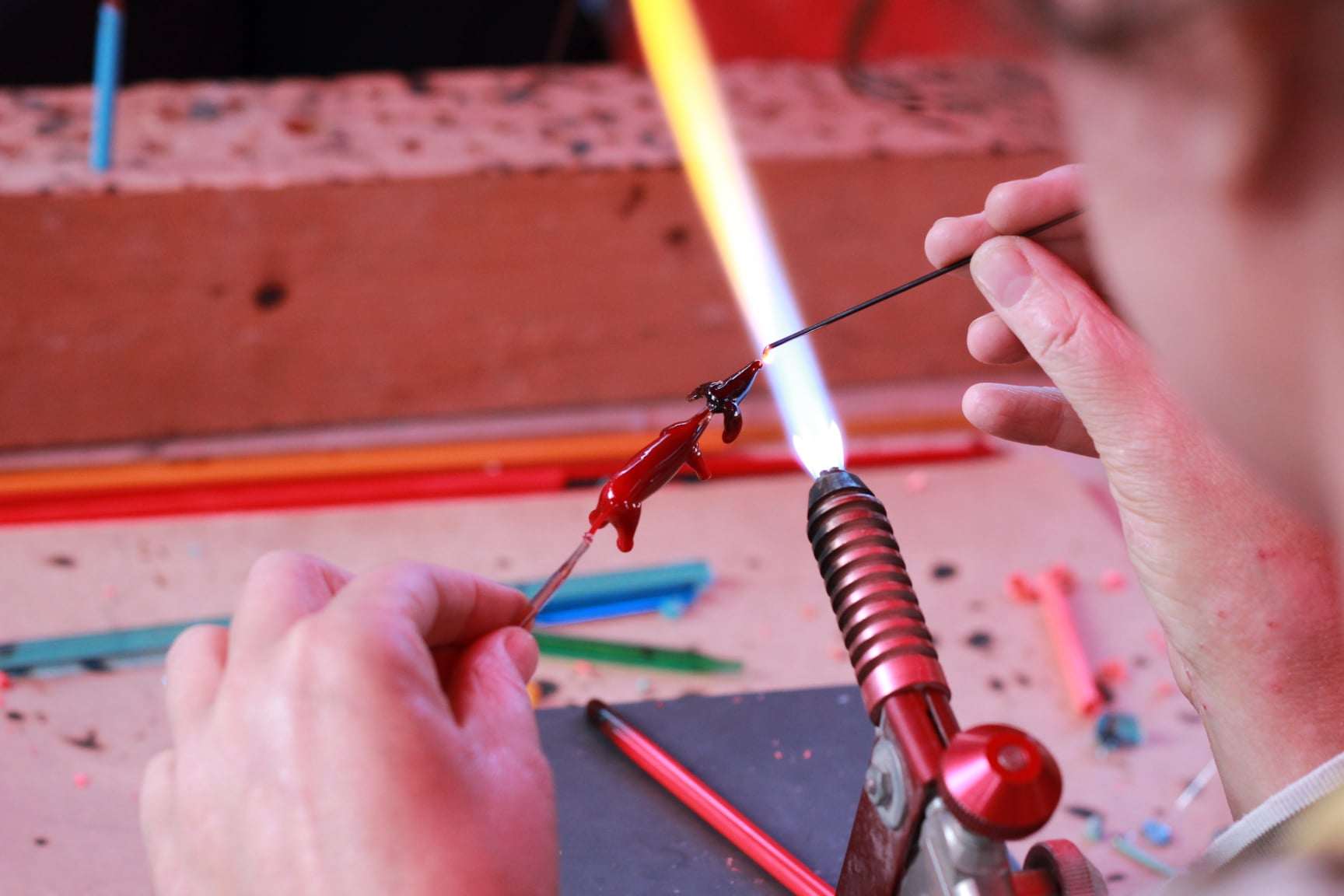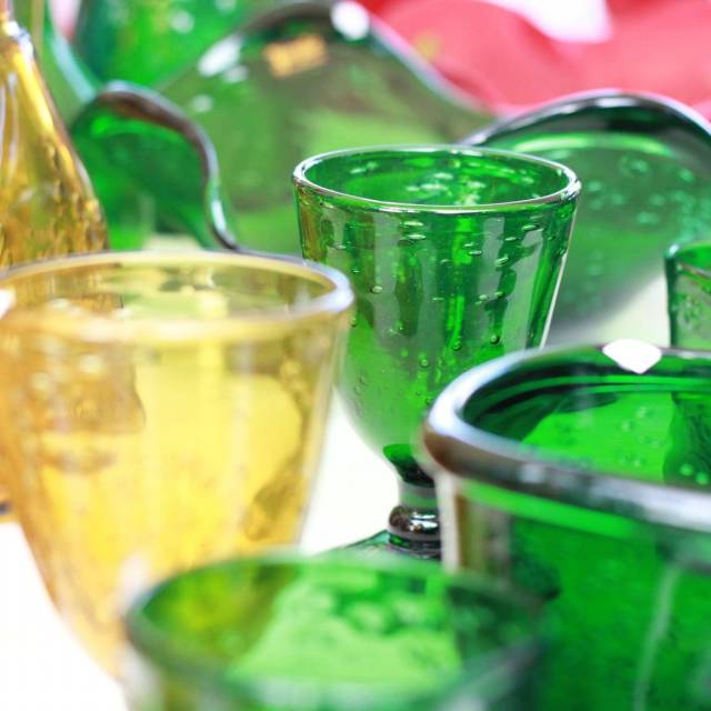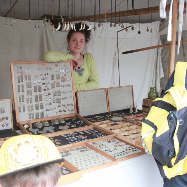 Tomasz Gondek i Jargiło Glass Studio użyli współczesnej techniki topienia szkła w piecach gazowych. Mobilne huty tworzyły małe arcydzieła a publiczność podpatrywała tajniki pracy hutników. Sprawdzaliśmy także działanie pieca butelkowego opalanego drewnem budowanego przez trzy dni autorstwa Tomasza Czyszczonia. Janie Ignis oprócz serwowania obłędnej kawy parzonej po turecku z akcentem arabskim, formował szklane koraliki wykorzystując technikę rekonstrukcji archeologicznej. Z kolei na stanowisku Katarzyny Harasym powstawały szklane korale uzyskane metodą Lampoworking. Działały stoiska z biżuterią szklaną i historyczną. Na stoiskach warsztatowych gościła mozaika szklana, ziołowe lampiony, grawerka, kalkomania i malowanie na szkle.