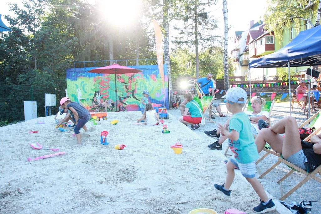 Oprócz możliwości twórczego spełnienia się w działaniach warsztatowych, mogliśmy także zaopatrzyć się w różne produkty, przedmioty na Targowisku po Sąsiedzku”. Chwilę odetchnienia starszym uczestnikom ArtSkweru i zabawy młodszym zapewniała kulturalna plaża.