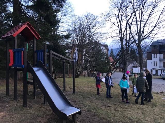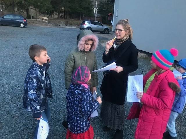 Podczas spotkania dokonaliśmy wizji lokalnej terenu przy MOKSiALu i zastanawialiśmy się wspólnie jakie rozwiązania architektoniczne można by tu zastosować. Założeniem było, aby dzieci wyraziły swoje zdanie na temat powstającej koncepcji. Chcieliśmy wysłuchać jakie potrzeby mają namłodsi mieszkańcy – poznać ich zdanie na temat tego, jaką formę powinien mieć „Ogród Zabaw”. Chcieliśmy również usłyszeć zdanie na temat tego, czego brakuje dzieciom i co powinno się w planowanym projekcie znaleźć.